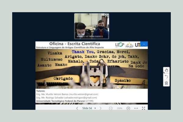 No dia 13 de março, os doutorandos Murillo e Rodrigo ministraram um curso sobre Escrita Acadêmica. A primeira edição do curso aconteceu na UTFPR e cobriu assuntos como por exemplo como estruturar um artigo científico, organizar ideias, utilizar ferramentas para apresentação visual de resultados, e publicação; e também como fazer uma carta de apresentação e uma carta de reposta aos revisores. Foi um prazer passar a tarde com vocês pessoal. Esperamos que todos se divirtam publicando os resultados de suas pesquisas.