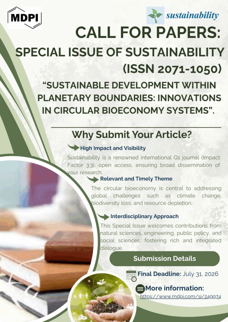 A edição temática, intitulada “Sustainable Development Within Planetary Boundaries: Innovations in Circular Bioeconomy Systems”, busca reunir contribuições científicas inovadoras sobre: